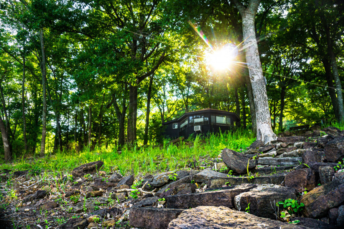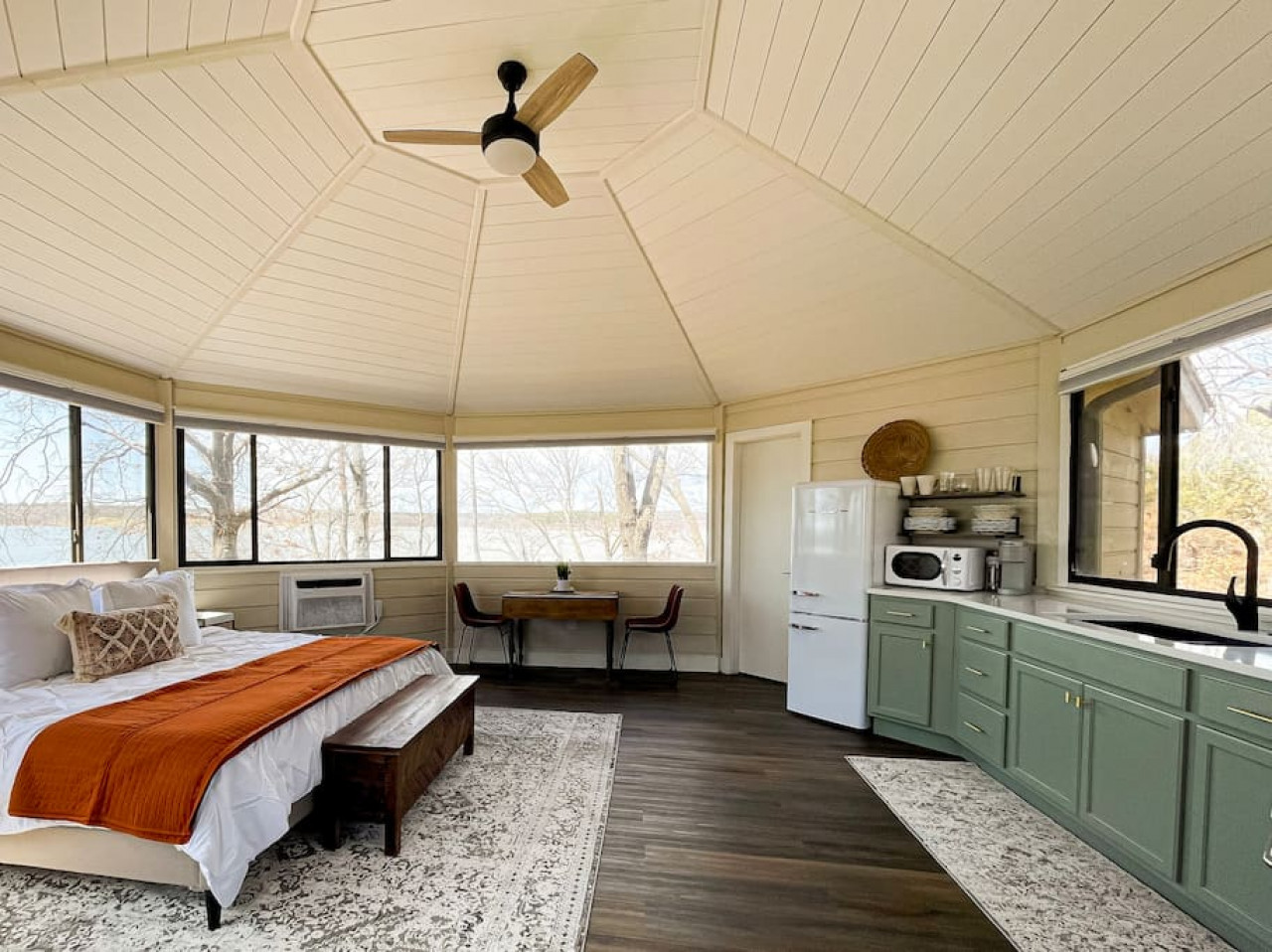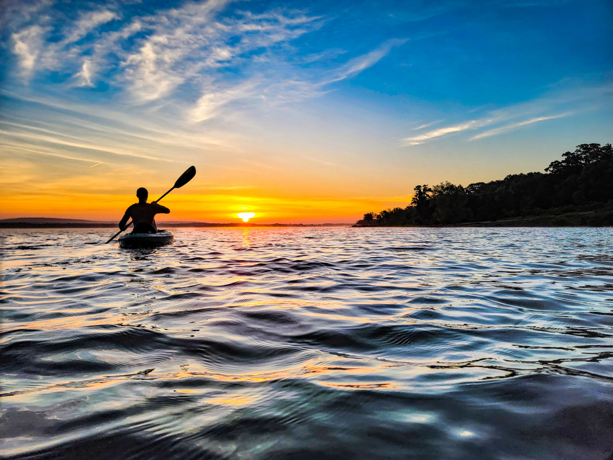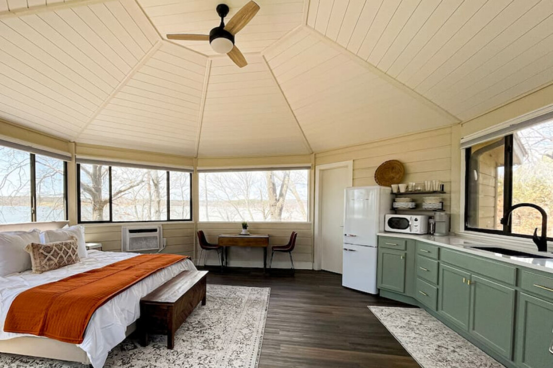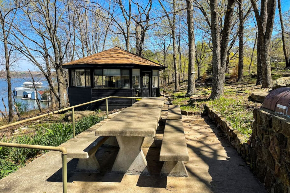 Fort Gibson Lake is a 20,000-surface-acre lake nestled in the hills of eastern Oklahoma, just 50 miles from Tulsa but far from civilization. With 225 miles of shoreline, this crystal-clear lake feels like your own private oasis (and is great for fishing!)