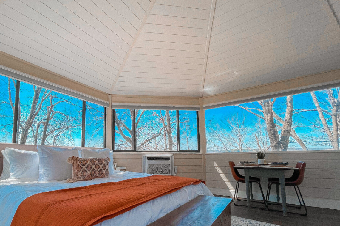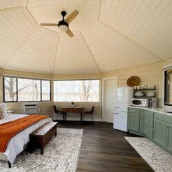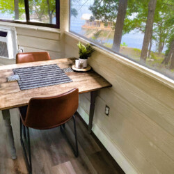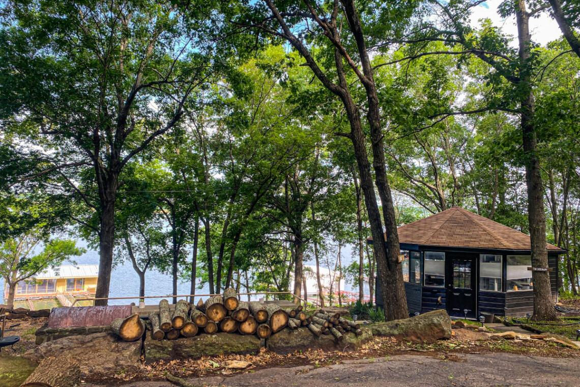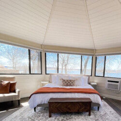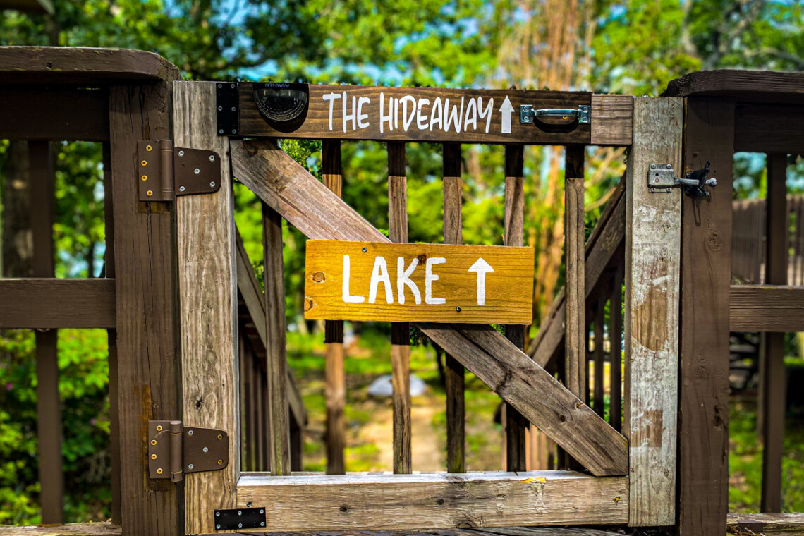 **Pack lightly** It is called the hideaway for a reason… follow the signs, The journey begins as you venture down past the main house, down 2 flights of stairs and then a paved pathway to the round building located right at the lakefront. The location is worth the trek, I promise! Enjoy!