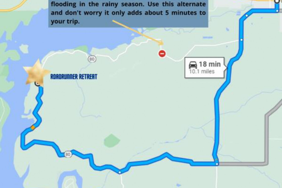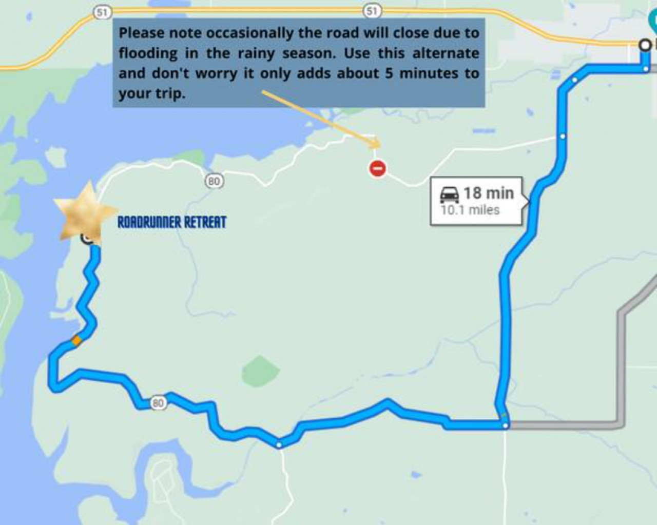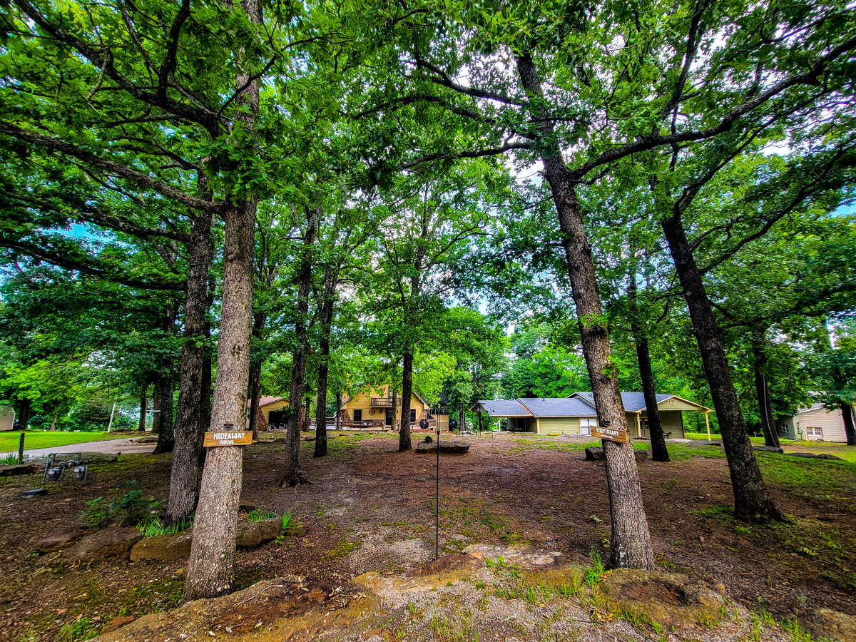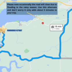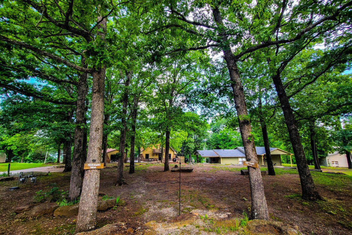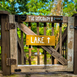 Enter through the white gated entry, drive down a gravel road to the designated Hideaway parking. It is located above the main house.
