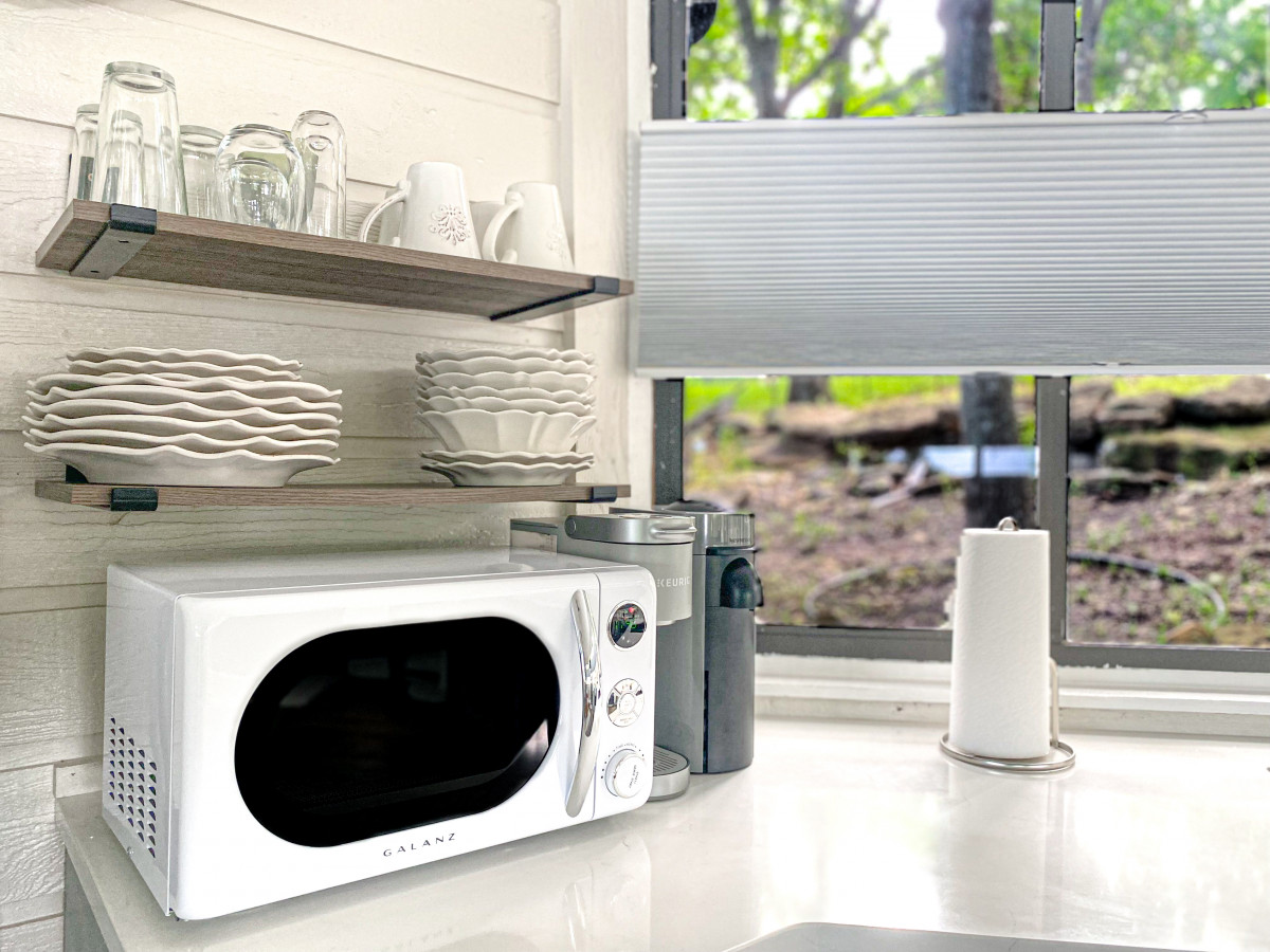 • Completely remodeled new kitchen is well-appointed with everything you’ll need. Darling brand new retro fridge and stove, crock pot, outdoor charcoal bbq, and everything you could possibly need to cook a gourmet meal or a quick frozen pizza.