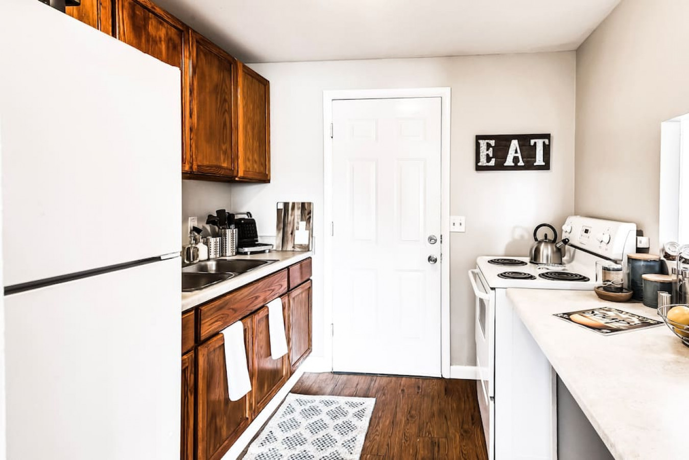 Full kitchen, laundry, bathroom and private home. This is a duplex, but your space is all to yourself. Fully fenced and private backyard.
